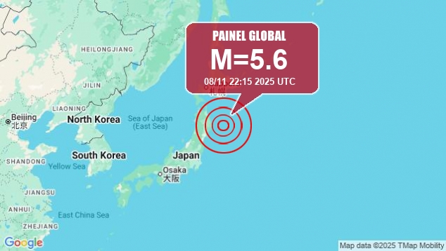 De acordo com os últimos 61 registros sísmicos reportados nas últimas 48 horas, o evento de maior intensidade ocorreu no Japão, 125 km a leste de Yamada, às 22:15 UTC do dia 08/11. O evento foi localizado a 19 km e de profundidade e segundo o USGS, Instituto de Pesquisas geológicas dos EUA, a magnitude do tremor foi calculada em 5.6. Do total de eventos, 53 deles foram classificados como de intensidade leve e 8 atingiram o status de moderados.