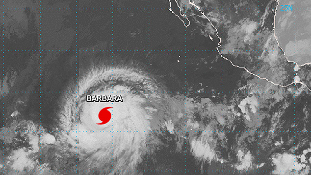 A tempestade tropical Bárbara ganhou força e se transformou em furacão sobre as águas do Pacífico oriental, como previsto pelo Centro Nacional de Furacões dos Estados Unidos (NHC).
