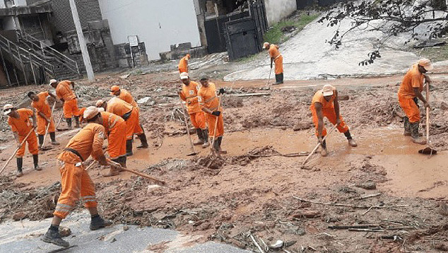![]() Homens da prefeitura trabalham na limpeza em Belo Horizonte após as chuvas torrenciais dos últimos dias. Crédito: Defesa Civil de Belo Horizonte. A capital Belo Horizonte, por exemplo, recebeu a maior quantidade de chuva em 110 anos. Foram 171 mm de chuva no período de 24 horas (entre os dias 23 e 24), de acordo com as medições oficiais divulgadas pelo Instituto Nacional de Meteorologia (INMET). Normalmente os temporais castigam os grandes centros urbanos no mês de janeiro e a média de chuva em Belo Horizonte é alta, chega a quase 330 mm. Neste ano de 2020 a quantidade de chuva já passou de 660 mm na capital. Já é um volume de chuva muito alto ao lado de outros anos históricos. Um levantamento do INMET mostra os janeiros mais chuvosos em Belo Horizonte: 850,3 mm (1985), 781,6 mm (2003) e 651,2 mm (1991). Assim como este ano, são quantidades de chuva excepcionais como os que acontecem durante o período de monções na Índia. As inundações e deslizamentos de terra fizeram 26 mortos só na região metropolitana de Belo Horizonte. De acordo com a Defesa Civil, o número de desabrigados passa de 3 mil e de desalojados de 13 mil pessoas.