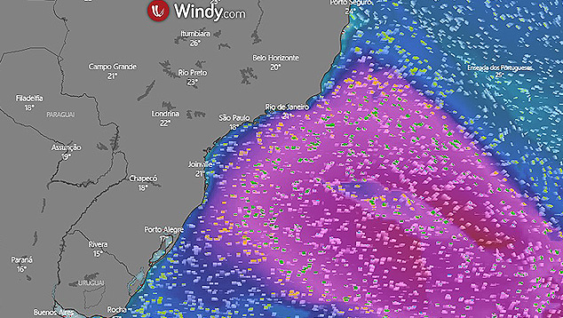 ![]() Animação gerada pelo Windy mostra o grande swell entre a costa do Sul e do Sudeste do Brasil. O mar passou a ficar agitado esta semana e a ressaca aconteceu nesta quinta-feira. Crédito: Windy. A ressaca já foi observada desde ontem em trechos de Florianópolis, no litoral de Santa Catarina, com a água invadindo pistas no sul e na região central da Ilha. A SC-405 e a SC-406 estão entre as rodovias atingidas. O pico da maré alta aconteceu no meio da tarde e foram algumas horas com trechos cobertos pela água, mesmo assim os carros passavam lentamente. ![]() Maré alta invadiu trechos da SC-406 em Florianópolis nesta quinta-feira. Crédito: Divulgação Polícia Militar Rodoviária. ![]() Maré alta na região do Rio Tavares, Florianópolis nesta quinta-feira. Crédito: Divulgação Pista Limpa Já no litoral paulista, a ressaca foi forte e provocou estragos em Santos e no Guarujá. A água do mar invadiu boa parte do calçadão e da avenida na orla de Santos. Estruturas de metal para impedir o acesso ao calçadão por conta das medidas de isolamento social foram derrubadas pela força da água. Aparelhos para exercícios, brinquedos de madeira e lixeiras que ficam na areia também foram destruídos. Além disso, muito lixo ficou espalhado e algumas ruas transversais tiveram alagamentos. ![]() Ressaca atinge trechos do Guarujá nesta quinta-feira. Crédito: Foto Carlos Eduardo Bernardini. Esta ressaca não foi tão forte quanto a do início de abril que na ocasião fez sumir vários trechos da orla na região da Baixada Santista.