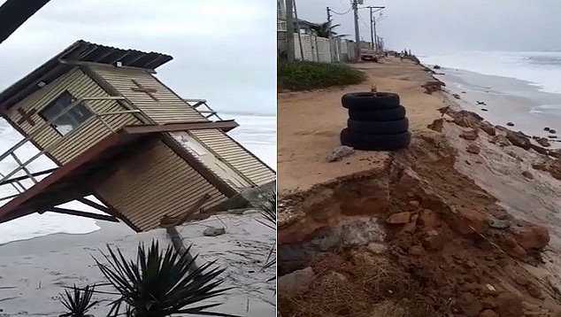 ![]() Imagens divulgadas em redes sociais dos estragos causados pela ressaca em Arraial do Cabo, no litoral do Rio de Janeiro, nesta quinta-feira. Três postos de guarda-vidas foram levados pela força da água na Praia Grande, em Arraial do Cabo. A água também atingiu e danificou algumas ruas da cidade, que fica na Região dos Lagos. Situações semelhantes com a água do mar avançando e provocando alguns estragos foram relatadas em Saquarema e nas praias do Leblon, Ipanema e Barra da Tijuca, na cidade do Rio de Janeiro. Confira abaixo algumas imagens: ![]() Quiosque precisou ser recolhido na Barra da Tijuca por conta da ressaca. Crédito: Imagem divulgada pelo twitter. ![]() Homens trabalham na limpeza da orla em Ipanema, após ressaca. Crédito: Imagem divulgada pelo twitter @radardabrasil ![]() Ressaca registrada em Saquarema, no litoral fluminense. Crédito: Imagem divulgada pelo twitter.
