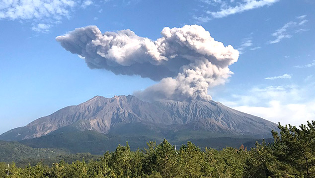 Explosões moderadas a fortes quase contínuas ocorreram na cratera do vulcão Sakurajima, região de Kyushu, que abriga vulcões ativos, no sudoeste do Japão, nos últimos dois dias. A Agência Meteorológica do Japão reportou uma forte erupção que produziu uma grande pluma de cinzas.