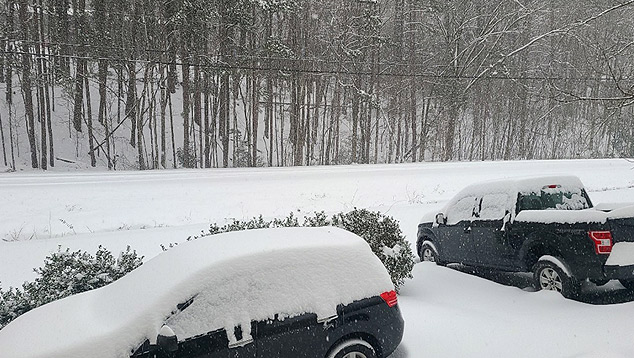![]() Hot Spring Village, no Arkansas, coberto por neve nesta segunda-feira, dia 15. EUA vivem a maior onda de frio em décadas. Crédito: Imagem divulgada pelo twitter @SkylarY64