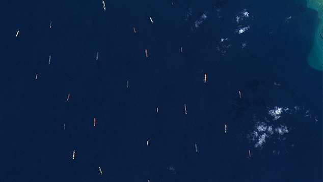 ![]() Imagem de satélite mostra o congestionamento de navios no Golfo de Suez no dia 27 de março. Crédito: NASA. A cena inusitada da grande embarcação bloqueando o canal foi inédita e a estimativa inicial da empresa responsável Evergreen era de semanas para remoção do cargueiro. Foram vários dias com dragas retirando toneladas de areia do fundo do canal e rebocadores tentando mover o grande navio, mas uma pequena ajuda da maré foi crucial para o desfecho.