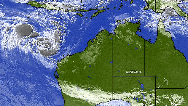 ![]() Mapa mostra a posição dos três sistemas que ganham força sobre o Índico, ao largo do noroeste da Austrália. Chuvas fortes e ventos destrutivos estão a caminho. Crédito: JTWC. |