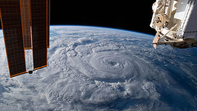![]() Furacão Genevieve visto à bordo da Estação Espacial Internacional (ISS) quarta-feira, dia 19 de agosto. Genevieve atingiu a categoria 4 na tarde da terça-feira. Crédito: NASA.