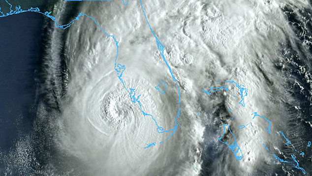 ![]() Imagem de satélite mostra o olho do grande furacão Ian muito próximo à costa da Flórida. Ian está no limite entre as categorias 4 e 5 de ventos. Crédito: NOAA/@spann