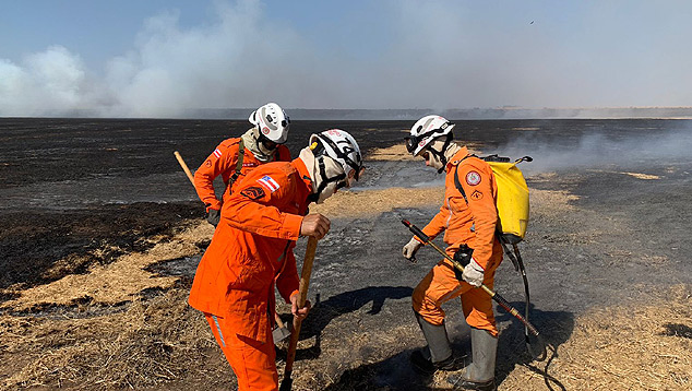 ![]() Imagem ilustratriva do combate aos incêndios este mês na Bahia. O estado teve um aumento de 179% no número de focos até agora na comparação com 2020. Crédito: Divulgação Corpo de Bombeiros da Bahia @cbmba193