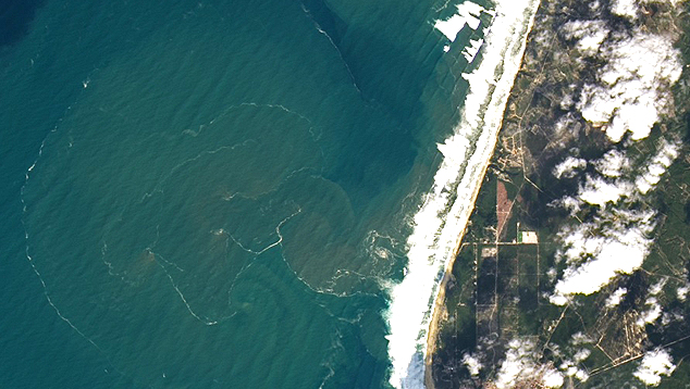 O mar de Nazaré não é para qualquer um! Os surfistas precisam de muita habilidade e coragem nestas águas de Portugal. Imagens de satélites capturadas a 705 quilômetros de altitude mostram efeitos nesta parte do Atlântico Norte, que revelam as ondas monstruosas e famosas no mundo todo.