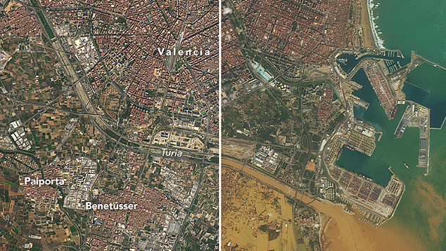 Satélite da NASA compara região de Valência antes e depois das graves inundações