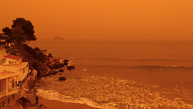 Tempestade de areia vinda do Saara deixa céu completamente laranja na Espanha