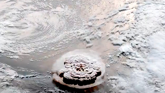 A atividade fenomenal do vulcão gerou ondas de tsunami que chegaram a mais de 100 localidades banhadas pelo Pacífico. ![]() A grande explosão do vulcão em Tonga gerou uma nuvem congumelo de cerca de 500 quilômetros de diâmetro. Estão ocorrendo tremores, mas nenhum novo evento eruptivo foi observado nos últimos dias. Crédito: NASA